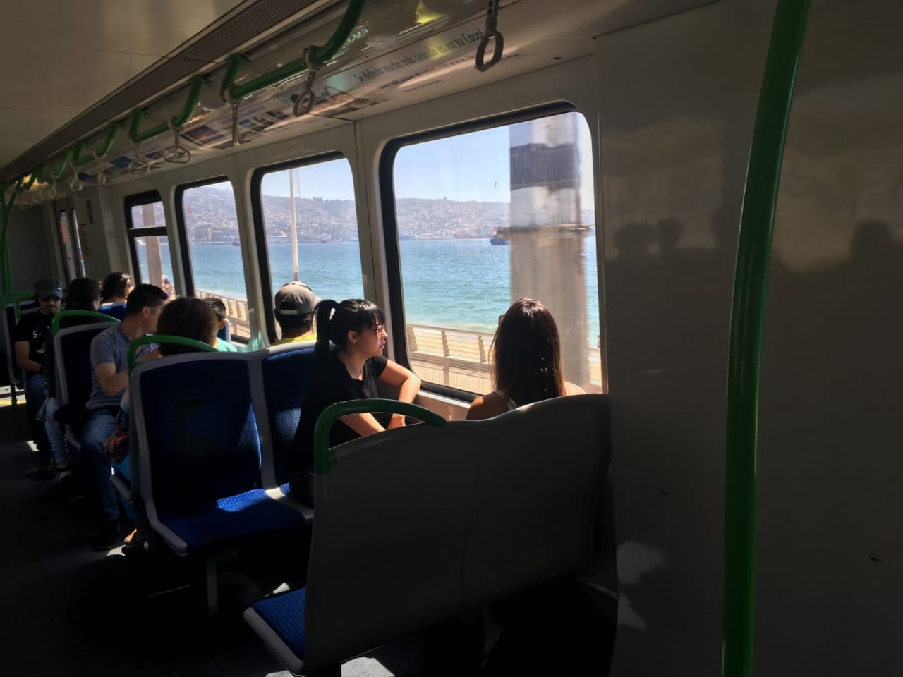 Porém, se você quiser e puder gastar uns pesos a mais, recomendo fortemente usar o trem. É preciso comprar um bilhete e carregar o saldo, mas vale muito a pena devido à bela vista. O transporte percorre a beira mar pela Avenida España.