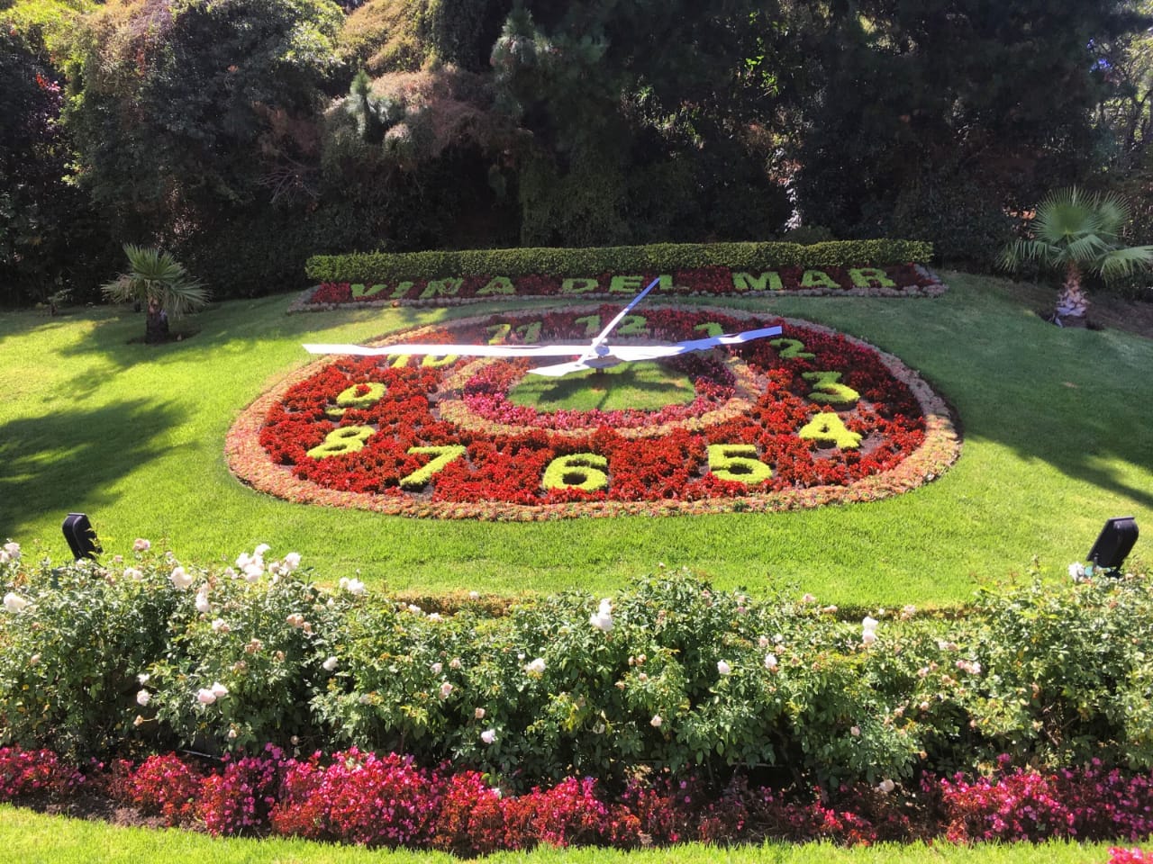Um dos cartões postais mais conhecidos do Chile é o Relógio de Flores. Esse jardim decorado fica no cruzamento da Av. España com Álvarez.