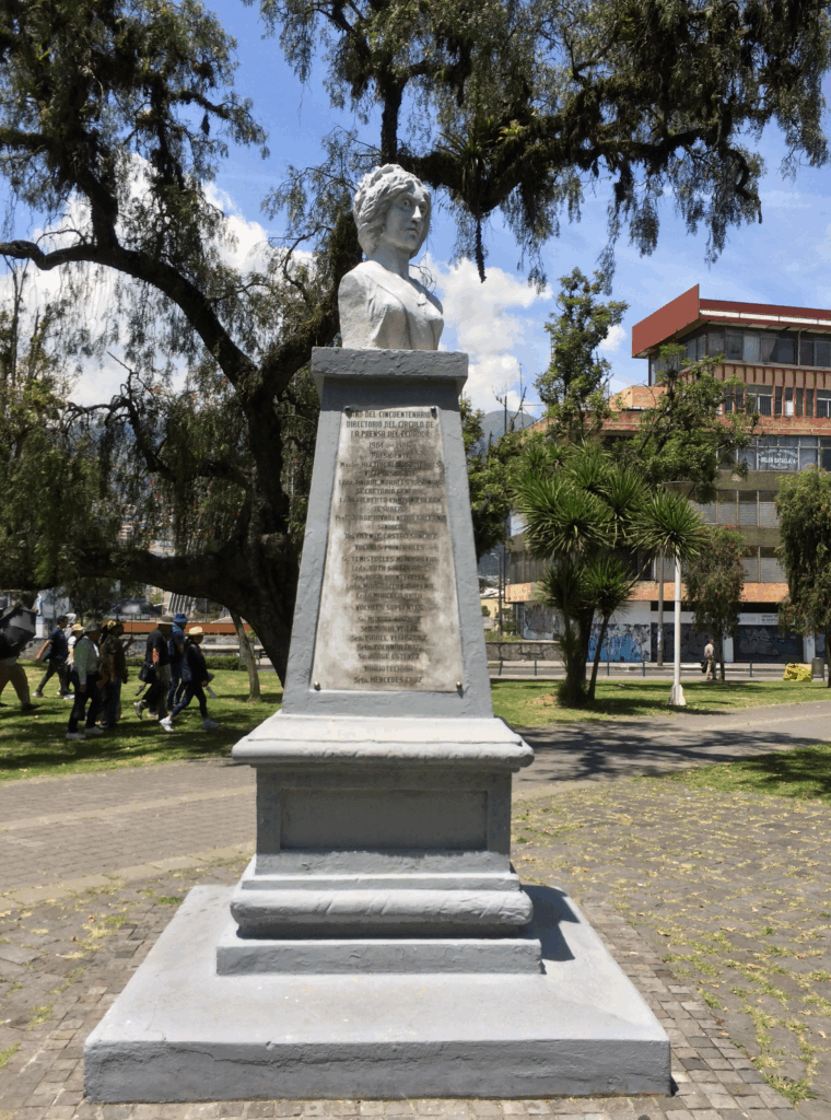 Também na capital equatoriana, há um pequeno busto dela no Parque La Alameda; uma rua no norte da cidade leva seu nome, assim como uma das 8 administrações zonais, especificamente a da Zona Centro. Em 2010, durante a cerimônia de comemoração dos 188 anos da batalha de Pichincha, outro busto foi revelado no Salão de Armas do Templo da Pátria.